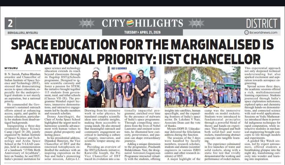 Space Science and Technology (IIST) and Arsha Space School on the V-LEAD
